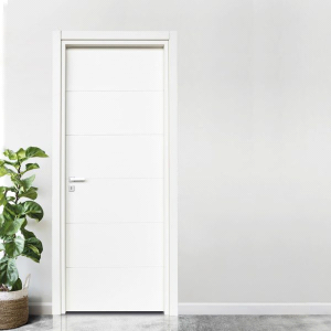 La maggior parte delle porte interne sono realizzate con un telaio piatto in multistrato da 40mm completo di guarnizione anti rumore e cornici da 7cm; l’anta ha uno spessore di 44mm intelaiata con massello d’abete e riempita con nido d’ape microforato placcato con pannelli di MDF da 4mm rivestiti in laminato. A seconda della serie e della porta desiderata dai nostri clienti si hanno varie scelte di maniglie interne, cerniere o a nube o a scomparsa e diverse tipologie di porte a seconda delle esigenze dell’ambiente abitativo (porta battente, scrigno, rototraslante, libro simmetrica, ecc…)